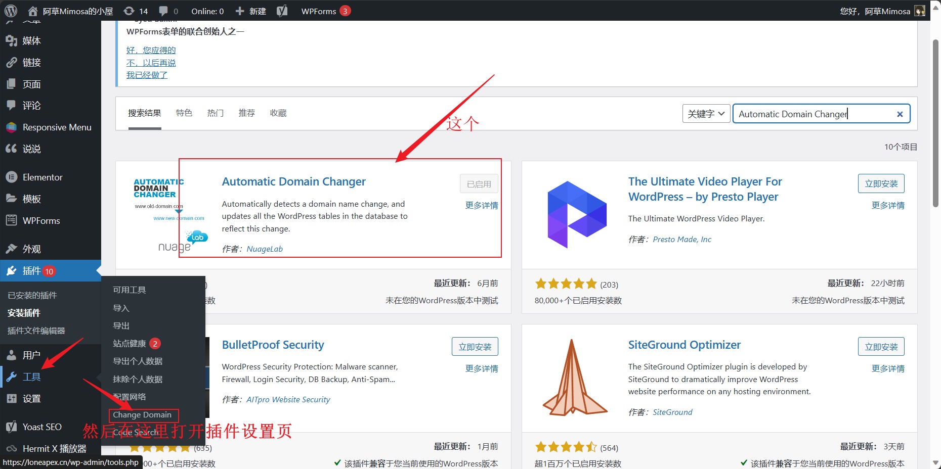 哎,换个域名真的很麻烦的,在网上的教程就用插件换个域名完事了,实际上那样还有一堆事,宝塔里头的网站、数据库也很麻烦