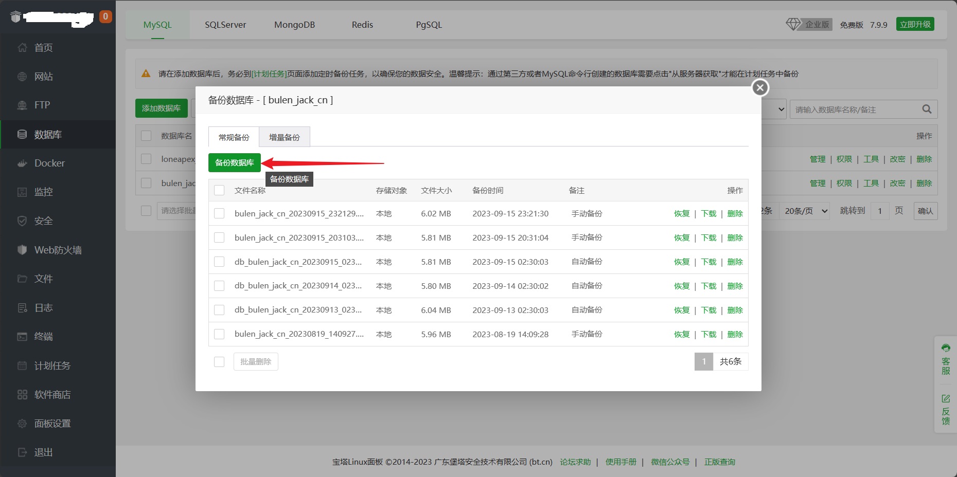 注意:在这之前一定要在宝塔备份数据库和网站!!!