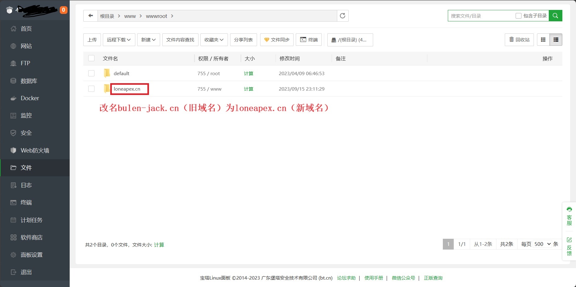 把旧域名的网站根目录名称改成新域名的根目录名称