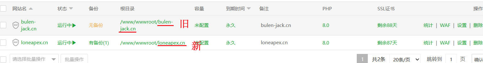 好了,如果照上面的步骤完成了,咱们的旧域名和新域名应该都可以访问了吧?