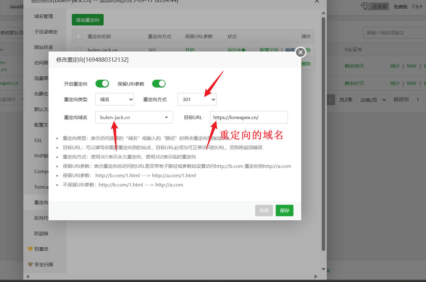 最后记得给旧域名加上ssl,不然会出错(和新域名加ssl一样)
