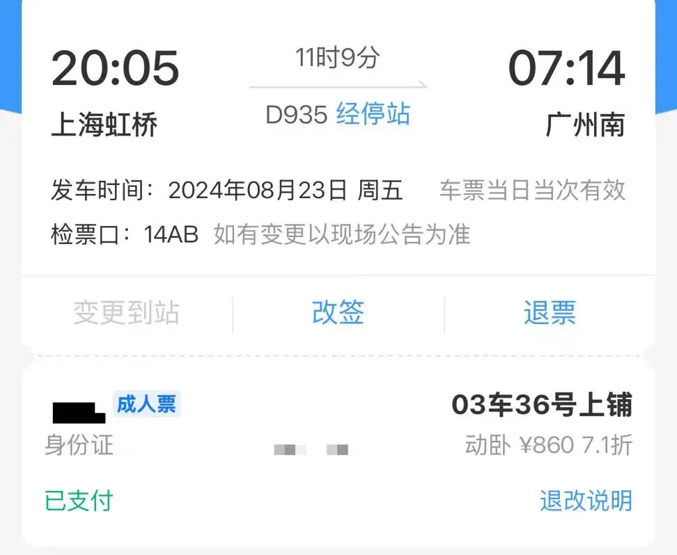 未成年独自旅游最大的问题就是住宿了吧,因为未成年不允许独自开房过夜(除非单日往返),但我又得赶明天的一个广州同人展会,所以就想出了一个歪办法——睡在夕发朝至的动车上,刚好省下酒店的费用。