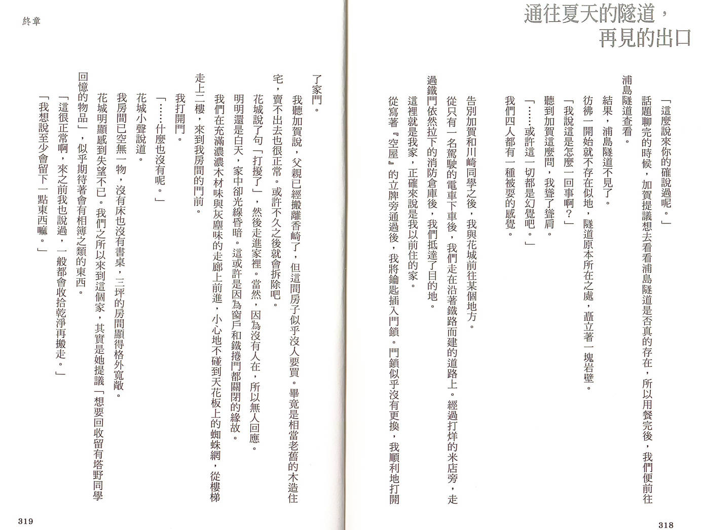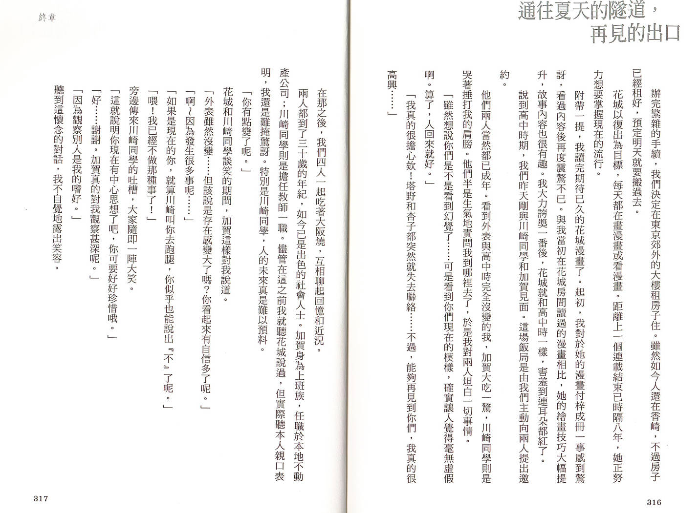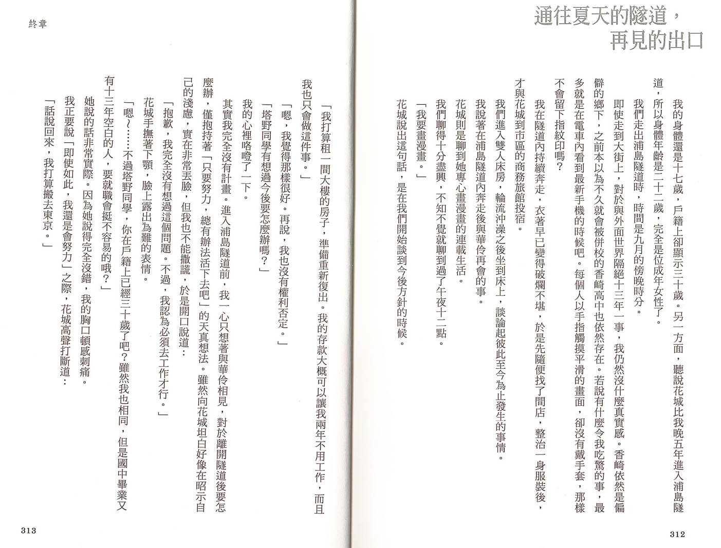 前文提到过,本作的剧场版改编实在堪忧,就这么草草的从隧道出来草草的结束,反倒让我意难平了。所以,我把真正的小说结尾扫描并放在这儿,给有需要的人用。