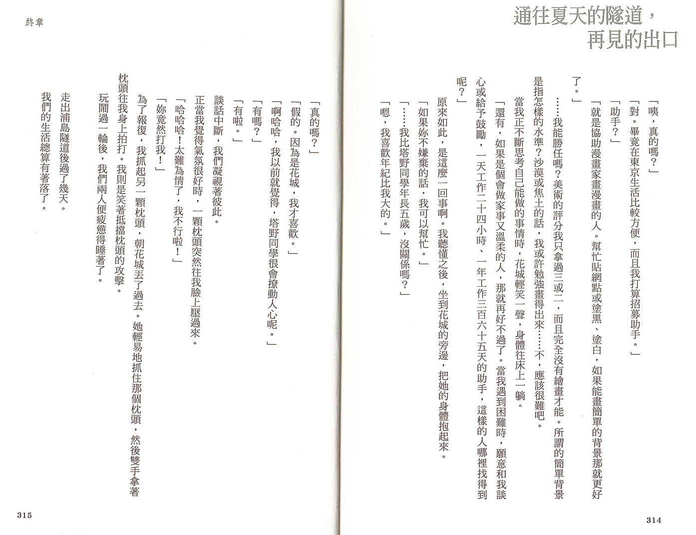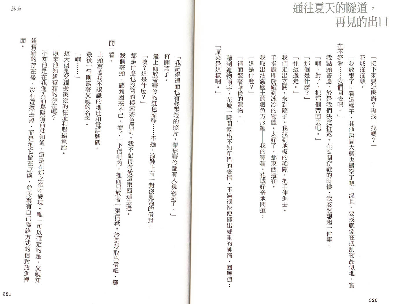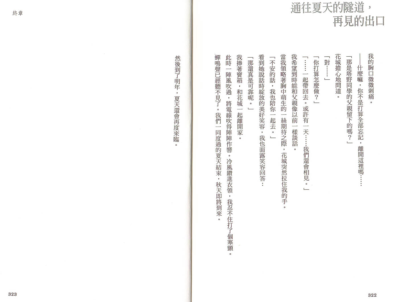 前文提到过,本作的剧场版改编实在堪忧,就这么草草的从隧道出来草草的结束,反倒让我意难平了。所以,我把真正的小说结尾扫描并放在这儿,给有需要的人用。