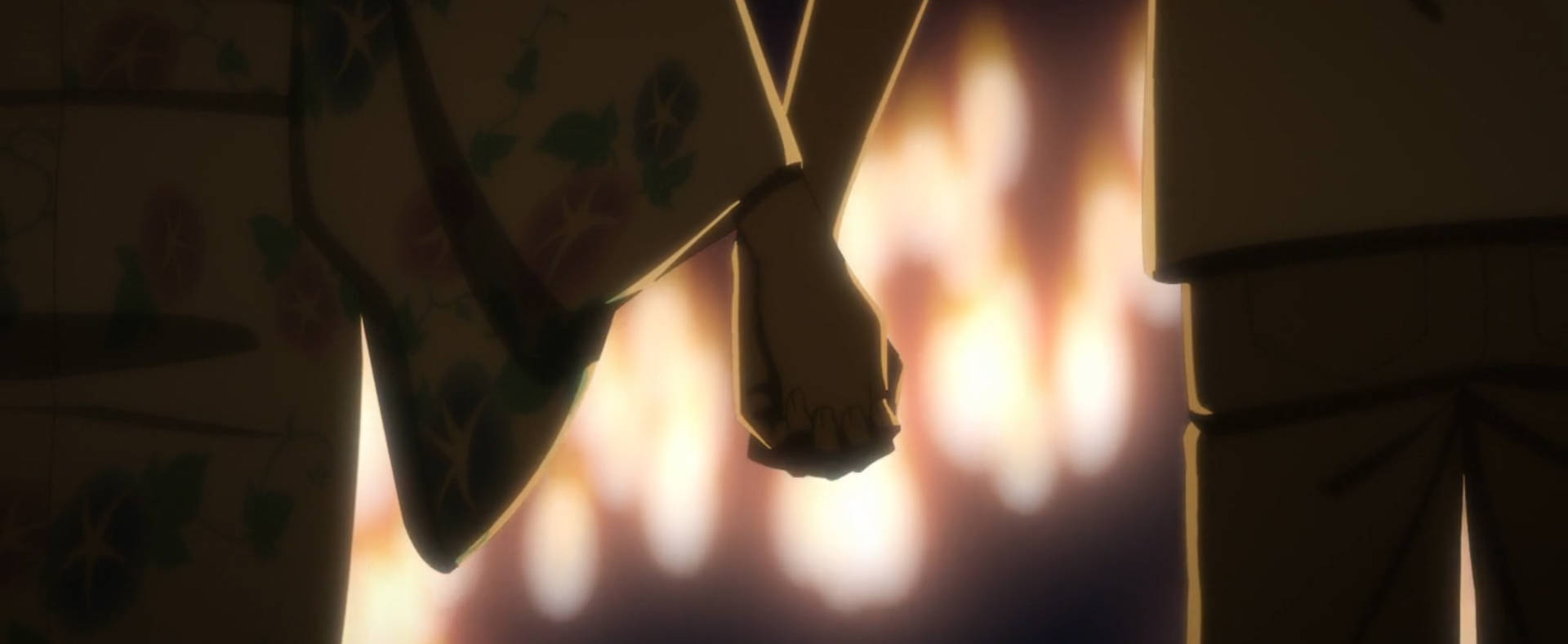 不知各位有没有发展,其实本作改编在转场时加入了四次航迹云,分别对应着花城、塔野二人的关系