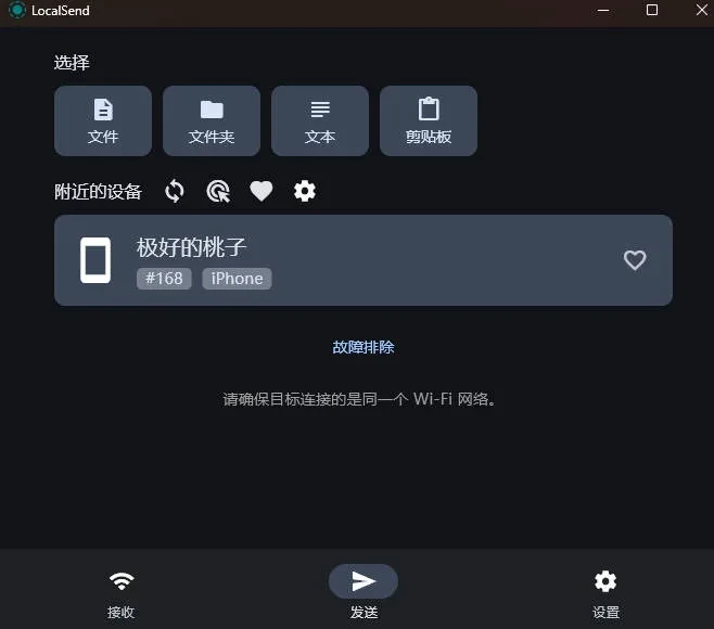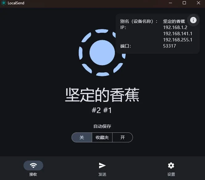 直到这个月,我发现了一个神奇的软件,它叫Local send,完全免费开源。这才是完全的局域网传输之神呀!傻瓜式操作,无需配置任何参数,开箱即用,自动查找局域网内的设备ip,自动连接,而且兼容各种系统。简直是完美的软件呀。