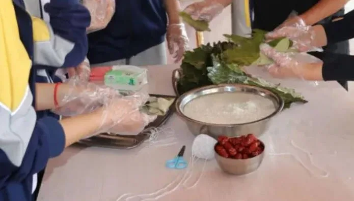 此时距离中考13天整。端午放假前夕,学校美名其曰「中考减压赋能包粽子」,搞了个包粽子活动。
