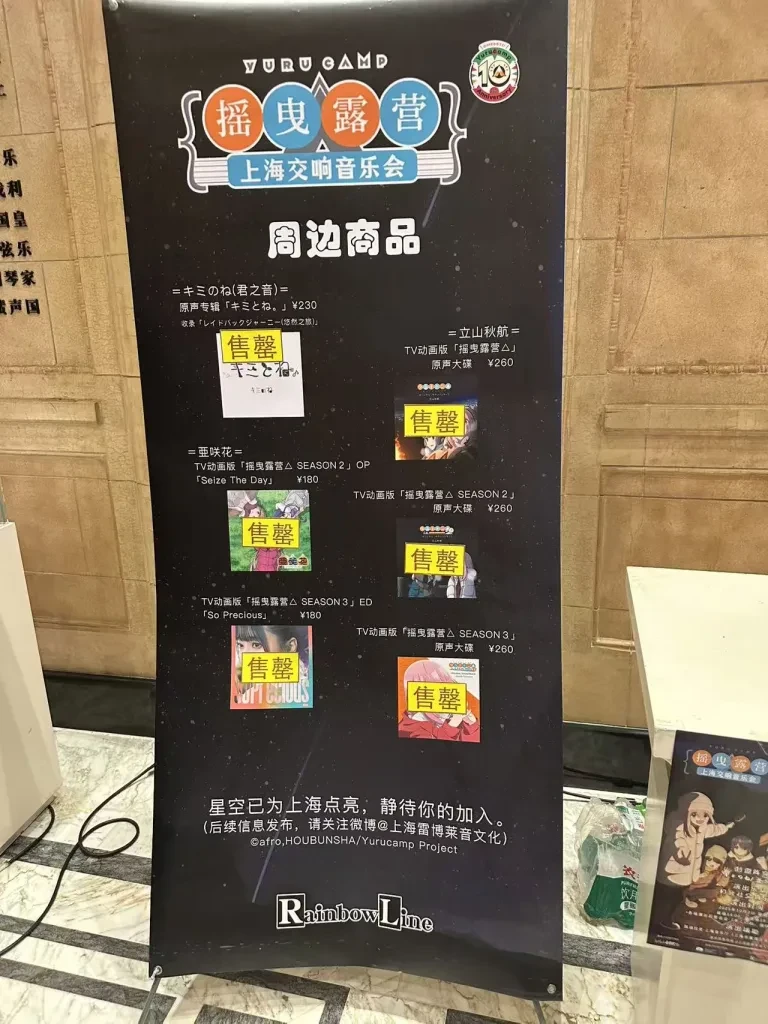 当我得知《摇曳露营》要搞音乐会时,是在9.30日,也就是开场前两天😶🌫️本来打算国庆去逛cp32展会来着,结果因学校的假期安排巧妙地错过了,不过幸运的是赶上了这次音乐会。或许是《摇曳露营》在国内的人气不算太高,直到开场前一天,票仍有剩余。