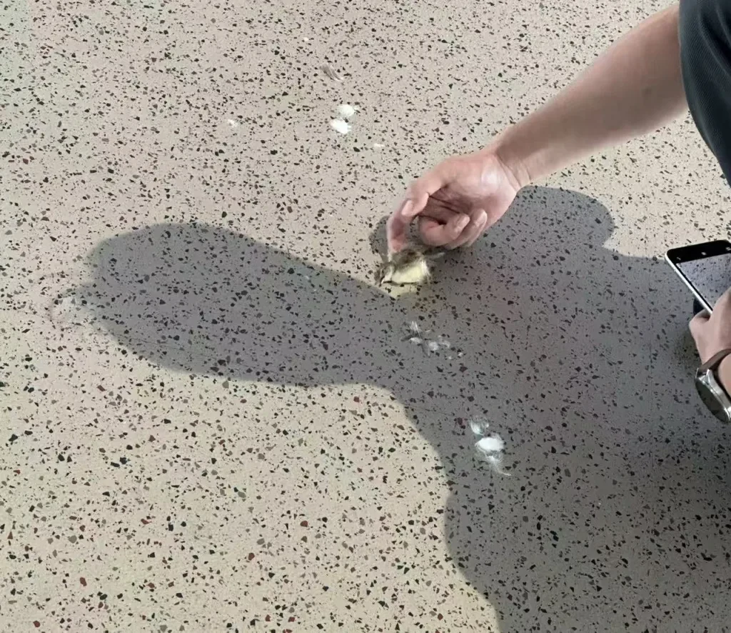 到浦东机场后,遇到了一个不可思议的事情:在航站楼内,遇到了一只活生生的小鸟: