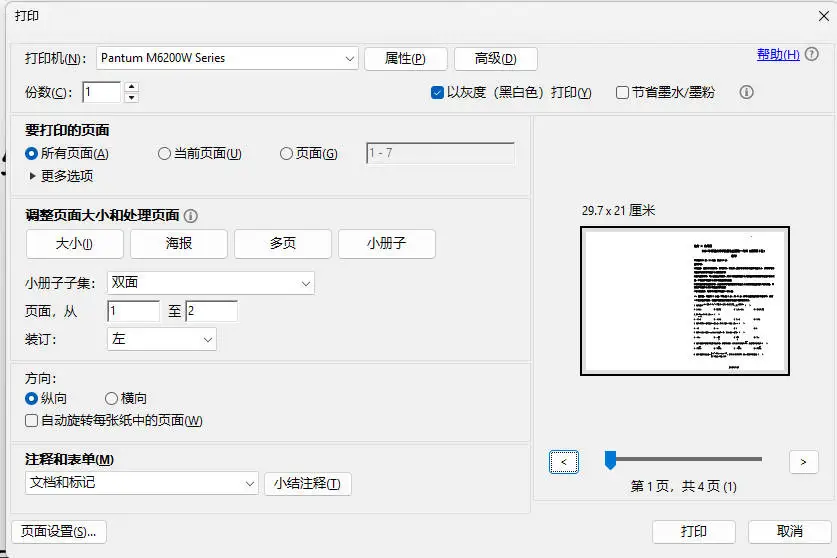 - 自动补齐页数:由于骑马订要求总页数必须是 4 的倍数,程序会自动添加空白页。
